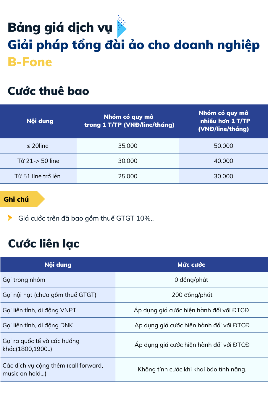 - B-fone cung cấp cấu hình cụ thể cho mỗi doanh nghiệp gồm số lượng thuê bao, tính năng trong suốt giữa các chi nhánh khác nhau như việc đặt tên hiển thị, chuyển cuộc gọi, tạo một kế hoạch đánh số chung cho tất cả các chi nhánh của doanh nghiệp.