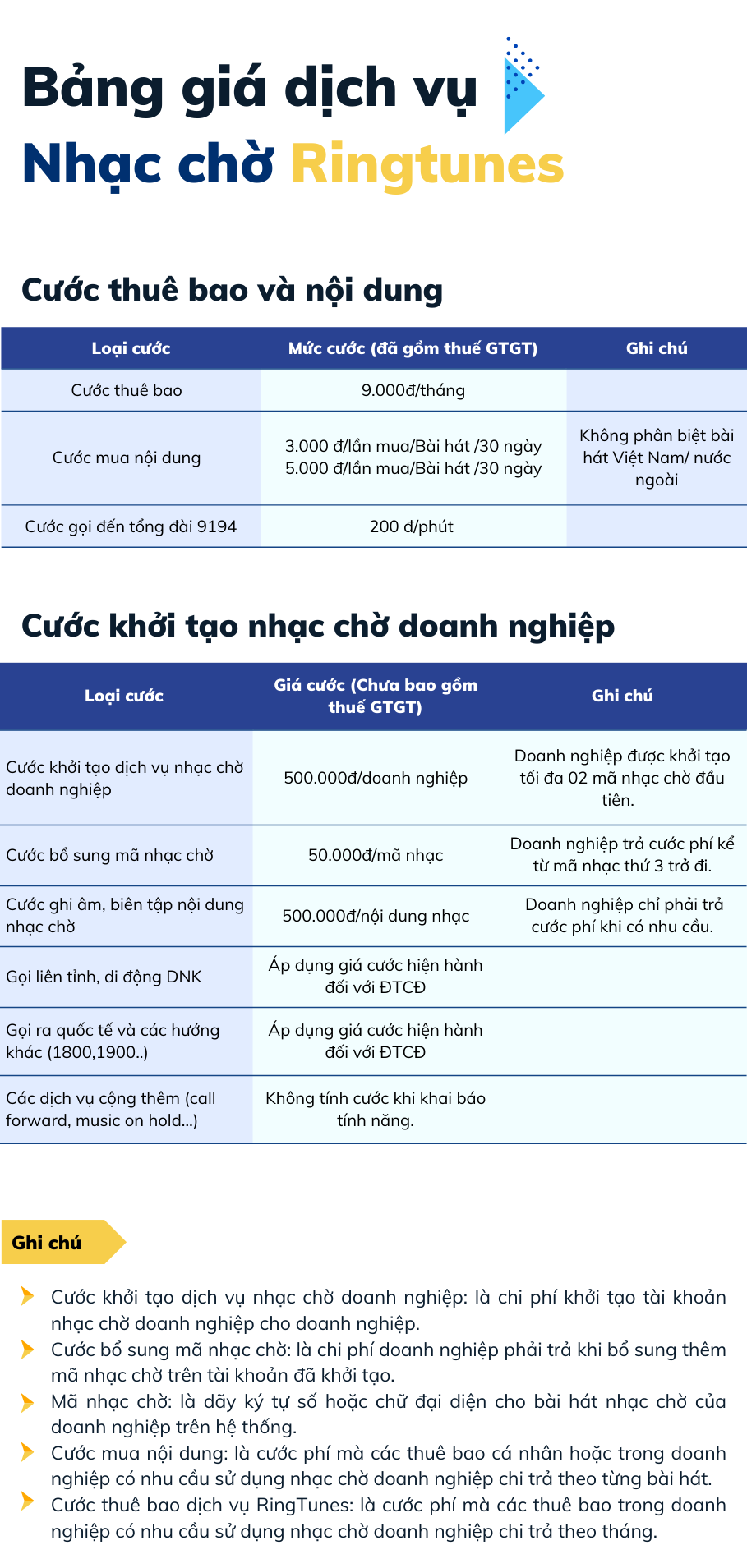 Dịch vụ nhạc chờ RingTunes là dịch vụ Giá trị gia tăng trên nền dịch vụ di động của VNPT. Dịch vụ cho phép các khách hàng tải bài hát trên cơ sở dữ liệu bài hát có sẵn của VNPT hoặc tự ghi âm bài hát hoặc đoạn hội thoại (sẽ được VNPT kiểm duyệt nội dung) để đưa lên thành đoạn nhạc chờ, khi các thuê bao cố định hoặc di động đạt được cuộc gọi đến số điện thoại của khách hàng sẽ nghe được đoạn nhạc chờ/ đoạn hội thoại này.