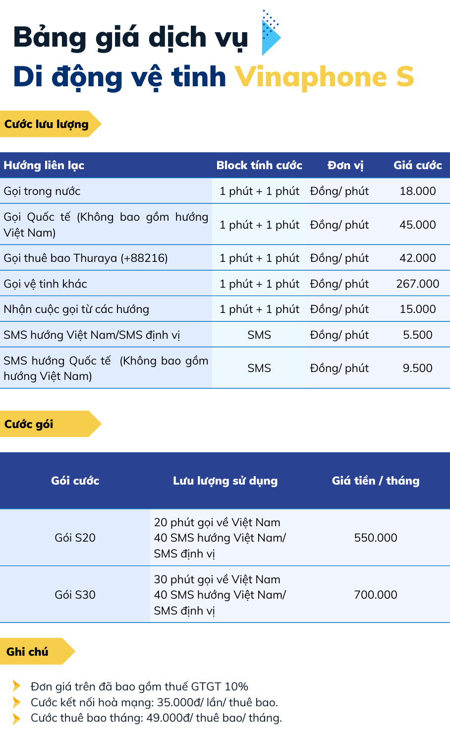 - Dịch vụ di động vệ tinh VinaPhone-S có những tính năng cơ bản của di động bao gồm thoại, SMS và một số dòng máy hỗ trợ Data. Khách hàng có thể sử dụng như bình thường ở các khu vực không có sóng GSM.